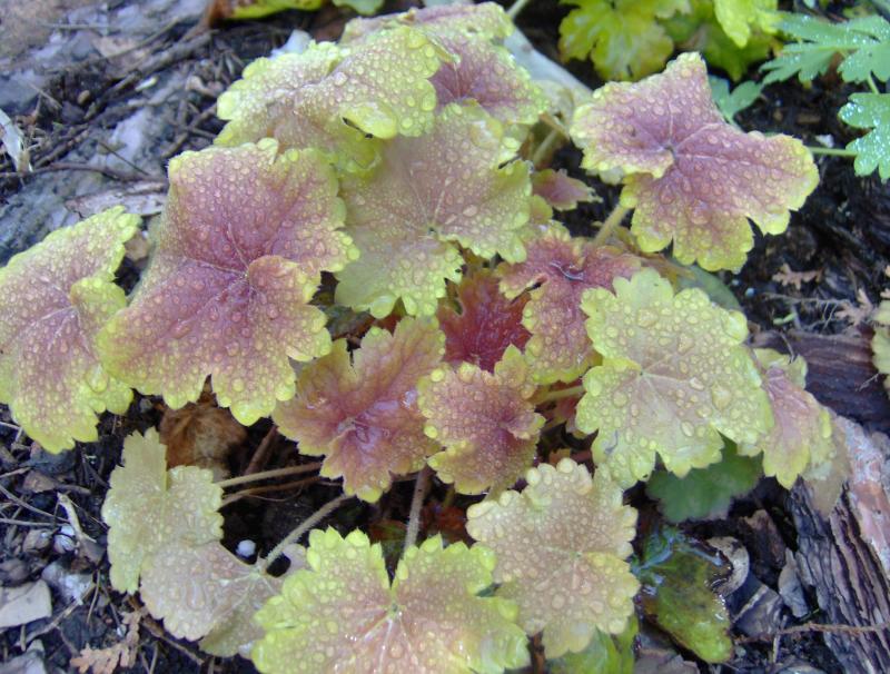 Żurawka o dość zmiennej kolorystyce w trakcie sezonu. Podobna do odmiany 'Delta Dawn'