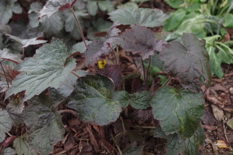 Rodzaj: Żurawka (Heuchera) Odmiana: Palace Purple Wymiary : odmiana tworząca kępy o szerokości 50 cm i wysokości 30 cm/65 cm z kwiatostanem. Kolorystyka: liście bordowo-brązowe, na cienistym stanowisku zielenieją. Spód liścia purpurowy. Kwiaty: białe. Kwitnienie: od maja do września. Warunki: stanowisko pół-cieniste/słoneczne.