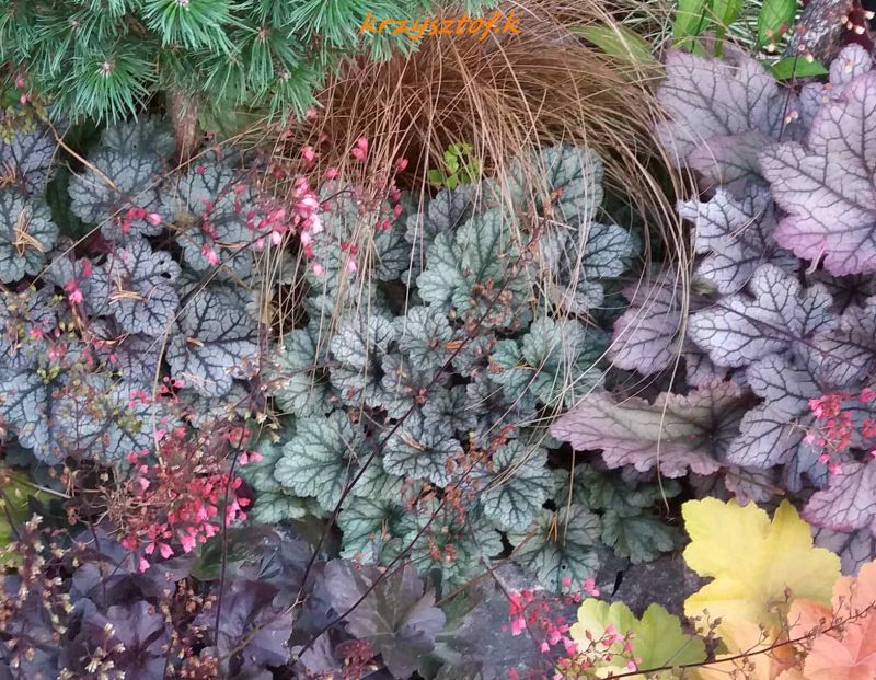Rodzaj: Żurawka (Heuchera) Odmiana: Rave On Wymiary : odmiana tworząca kępy o szerokości 30 cm i wysokości 15-20 cm/40 cm z kwiatostanem. Kolorystyka: srebrno-zielone liście. Kwiaty: różowe. Kwitnienie: od maja do sierpnia. Warunki: stanowisko pół-cieniste/słoneczne.