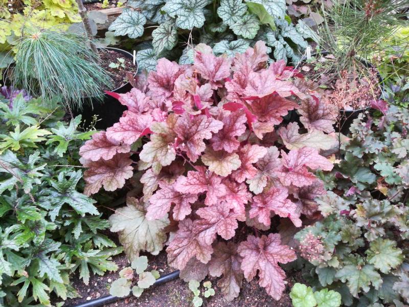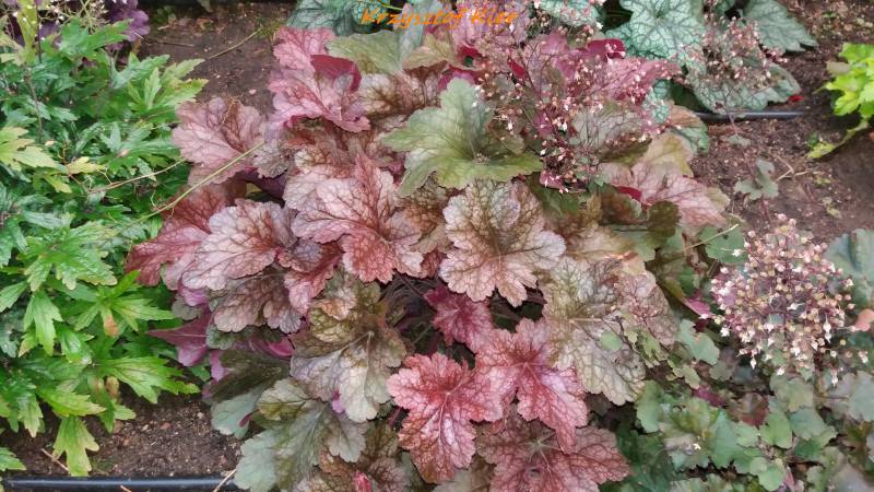 Rodzaj: Żurawka (Heuchera) Odmiana: Sparkling Burgundy Wymiary : odmiana tworząca kępy o szerokości 40 cm i wysokości 30 cm/60 cm z kwiatostanem. Kolorystyka: młode liście burgundowe/bordowe, starsze zielenieją. Kwiaty: białe. Kwitnienie: od maja do sierpnia. Warunki: stanowisko pół-cieniste/słoneczne.
