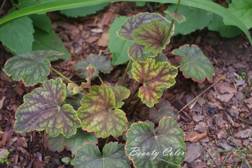 Rodzaj: Żurawka (Heuchera) Odmiana: Beauty Color Wymiary : tworzy kępy o szerokości 30 cm i wysokości 20 cm/40 cm z pędami kwiatowymi . Kolorystyka: kremowe kwiaty, liście przyjmują kolory od zielonego po prawie czerwony . Warunki: stanowisko pół-cieniste/słoneczne. Kwitnienie: czerwiec.