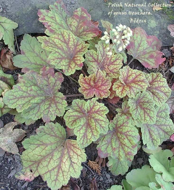 Rodzaj: Żurawka (Heuchera) Odmiana: Electra Wymiary: tworzy kępy o średnicy 30 cm i wysokości 20 cm/35 cm z kwiatostanem. Kolorystyka: zielone liście z czerwonym żyłkowaniem. Kwiaty: białe. Kwitnienie: od czerwca do sierpnia. Warunki: stanowisko cieniste/pół-cieniste.