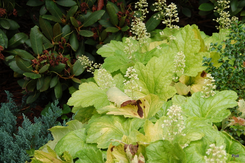 Rodzaj: Żurawka (Heuchera) Odmiana: Electric Lime Wymiary: tworzy kępy o średnicy 35 cm i wysokości 30 cm/40 cm z kwiatostanem. Kolorystyka: zielono-żółte z czerwonym żyłkowaniem . Kwiaty: białe. Kwitnienie: od maja do czerwca. Warunki: stanowisko cieniste.