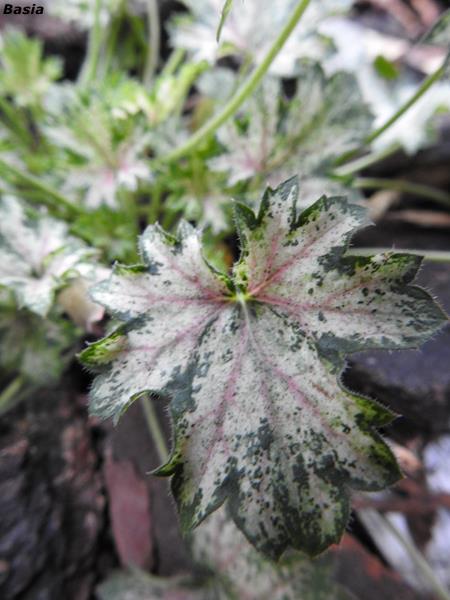 Liście: zielono, biało, kremowe, natomiast jesienią dostają nietypowej dla żurawek różowej barwy
