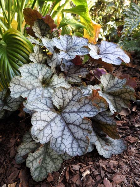 Wysokość: około 20cm Liść: srebrny z ciemnymi żyłkami Zalecane stanowisko: półcieniste do słonecznego Mrozoodporność: polecana do uprawy w strefach 4-9