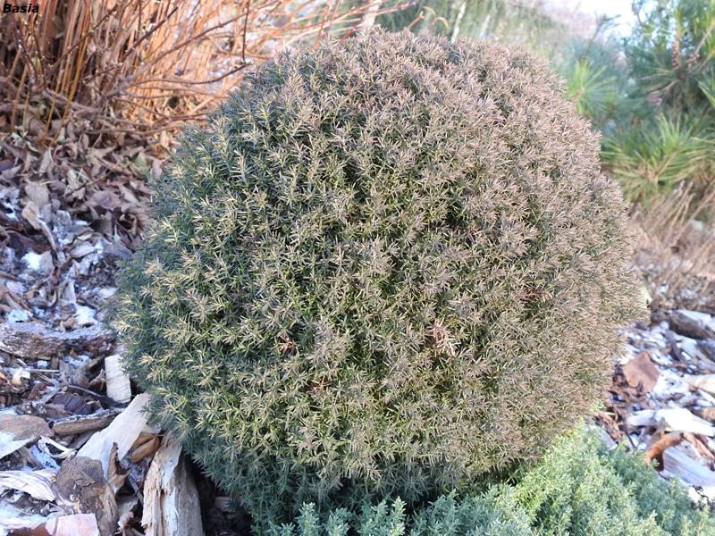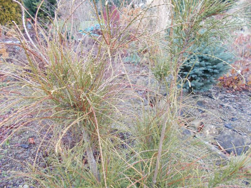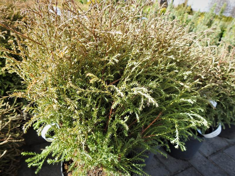 Łuskowate, zimozielone igły, na końcach zaostrzone, odstające, rozmieszczone rzadko, długości 3-4 mm, na gałązkach silnie przylegające, długości około 2,5 mm. Łuski rosnące na dolnej i górnej płaszczyźnie gałązki opatrzone wypukłym gruczołkiem żywicznym, boczne krótsze i bez gruczołków.